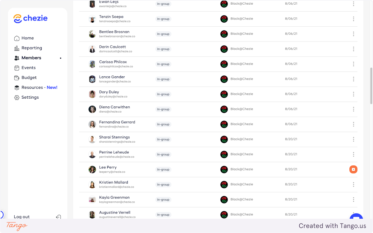 In Admin view, click on Members