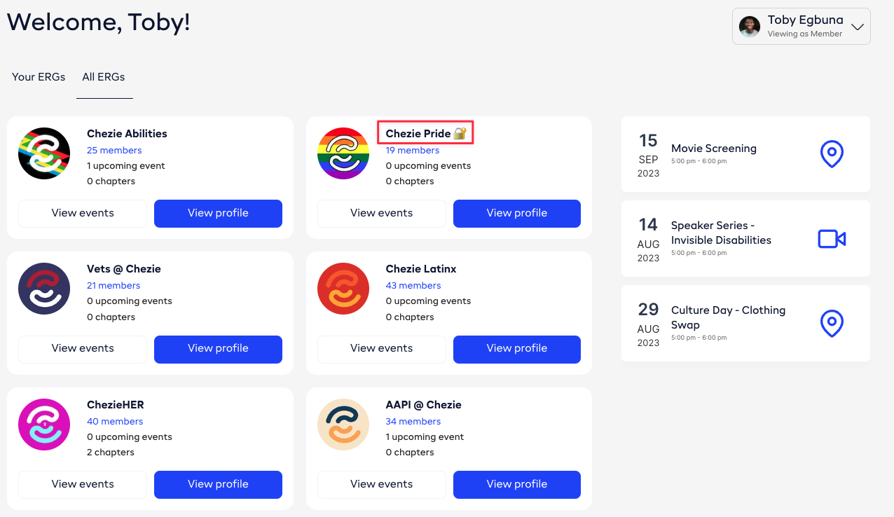 If a group is private, employees have to request to join. Until the request is accepted, employees canโt see leadership, members, or events.
