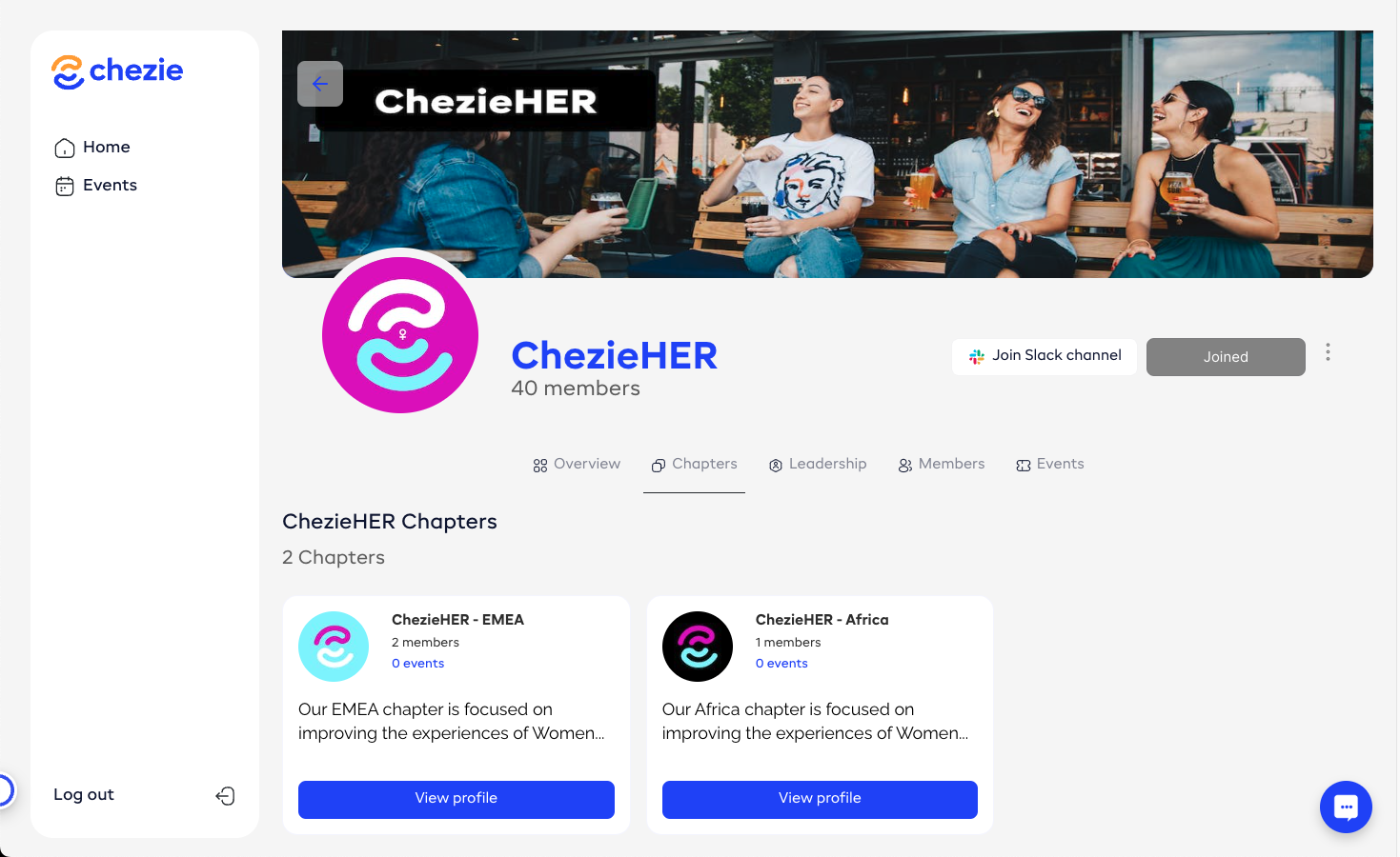 For members, Chapters are nestled in the Landing pages for their parent Group.