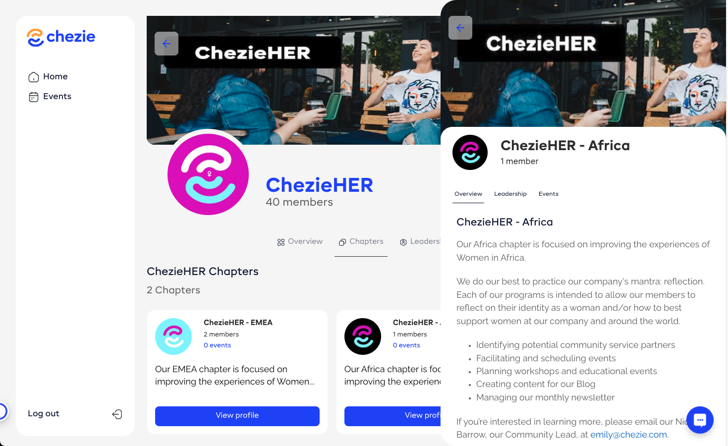 Chapters operate just like normal Groups. Each chapter can have its own: