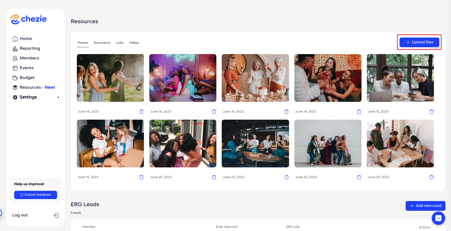 Share photos, docs, links, and videos with your members so they can easily access them.