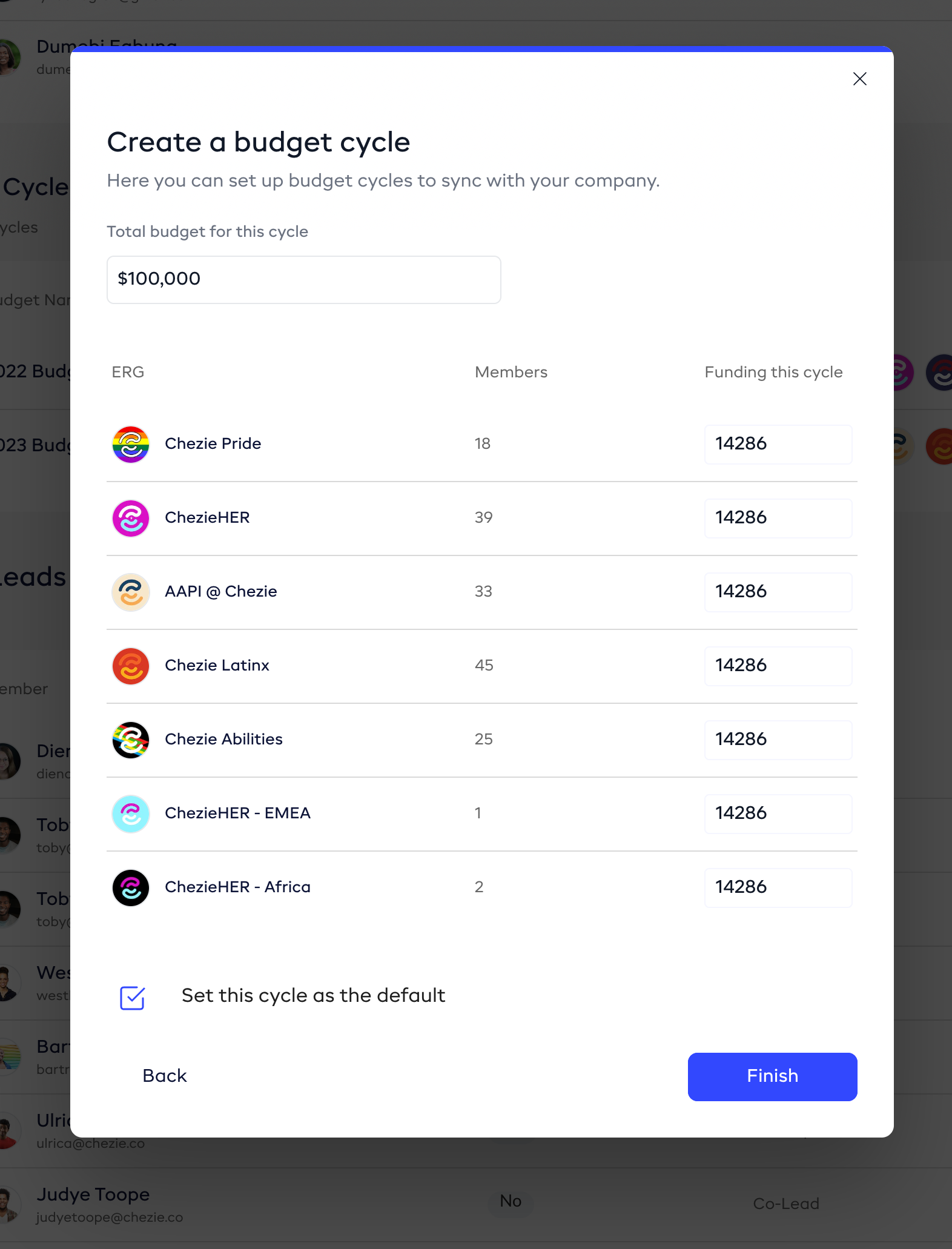 Next, enter the amount of money that each selected Group has to spend in this cycle. Lastly, determine if this cycle is to be used as the default moving forward.
