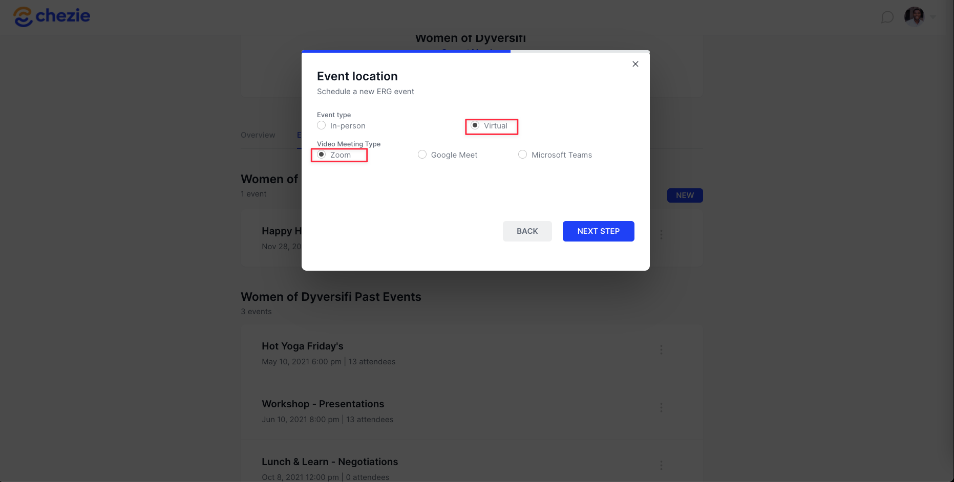 Note: this set up is part of the onboarding process. Once your IT admin has connected your company's Zoom account, changes can only be made by contacting support at support@chezie.co.
