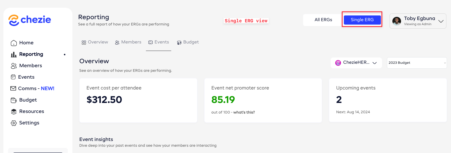 Single BRG view - shows you the cumulative NPS score for all survey responses for events that the selected BRG has hosted