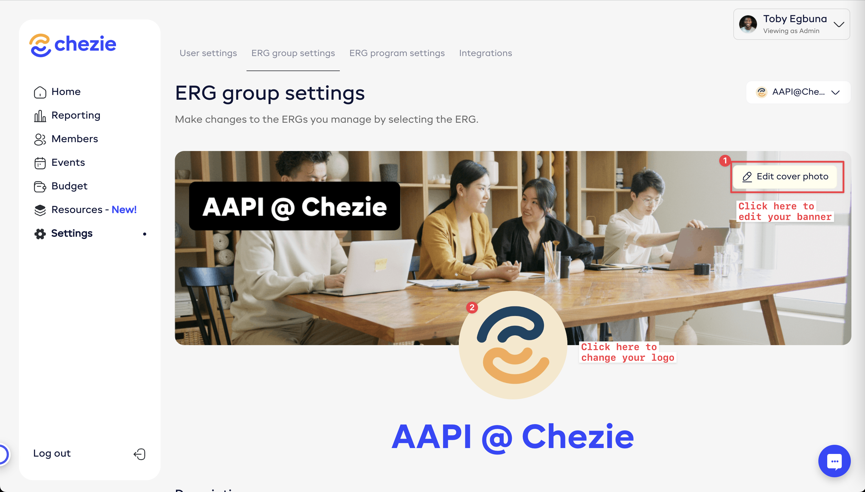 To edit your banner, click the Edit cover photo button in the top right corner.