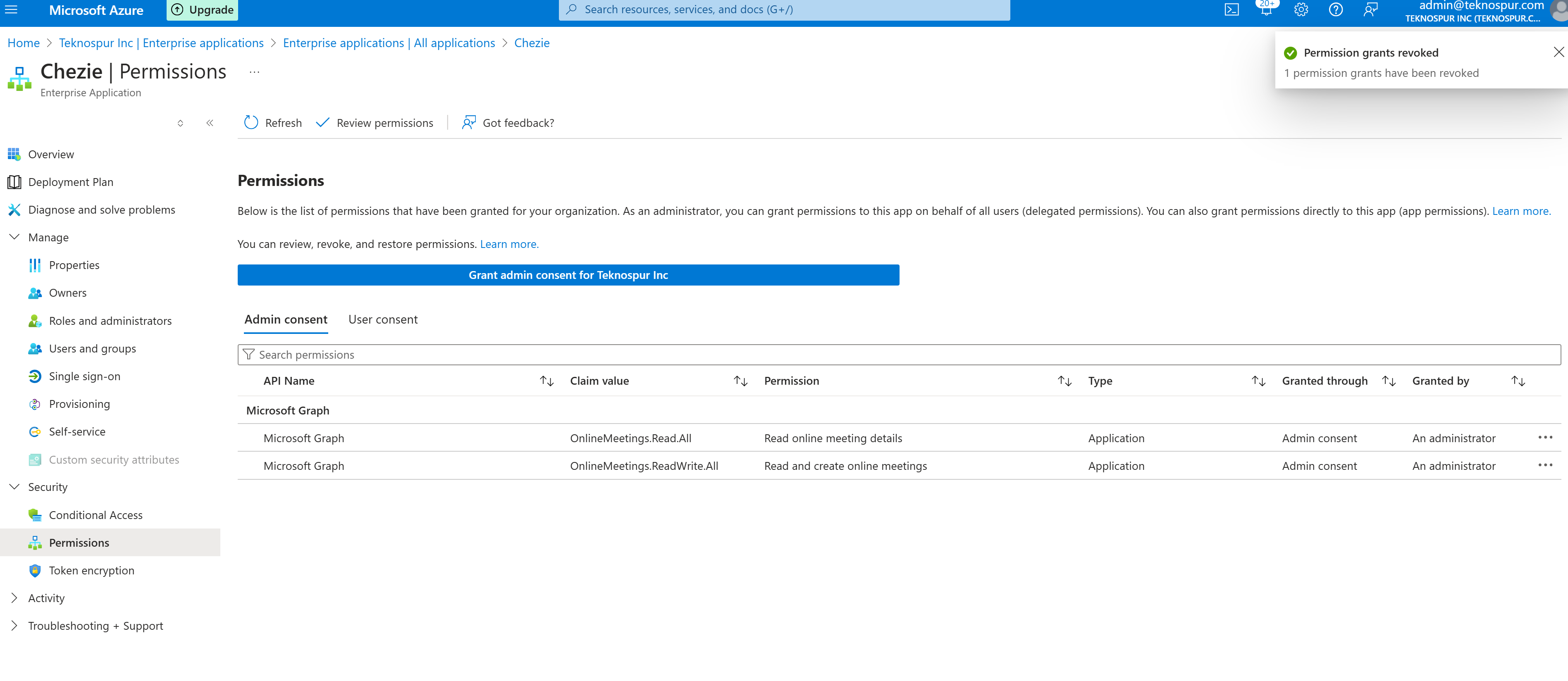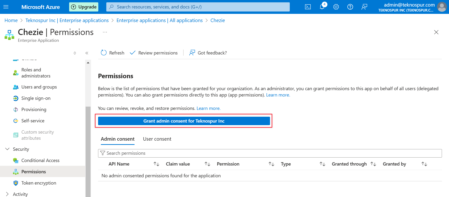 Go back to your Azure directory and click Enterprise Applications → Chezie.