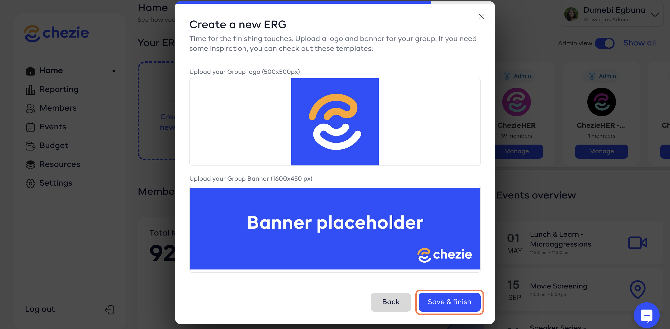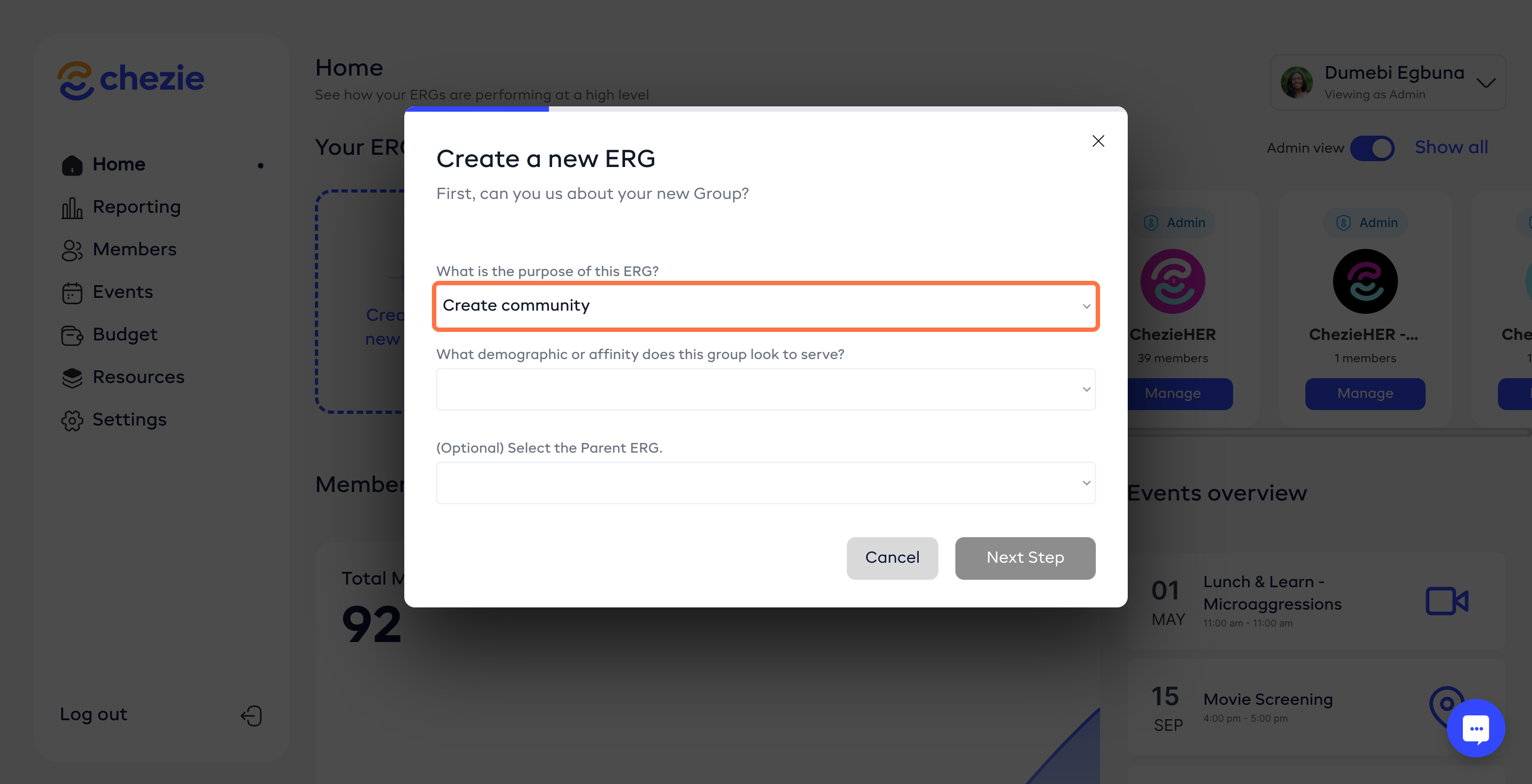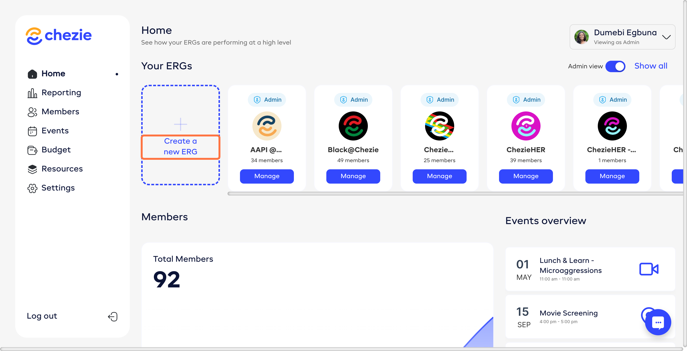 From the homepage, click CREATE A NEW ERG to the left of the Your ERGs header.