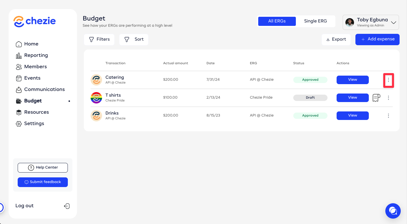 Find the expense you want to request approval for. Click the three dots next to the expense.