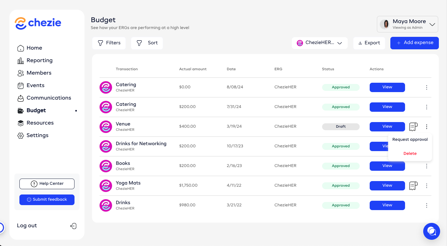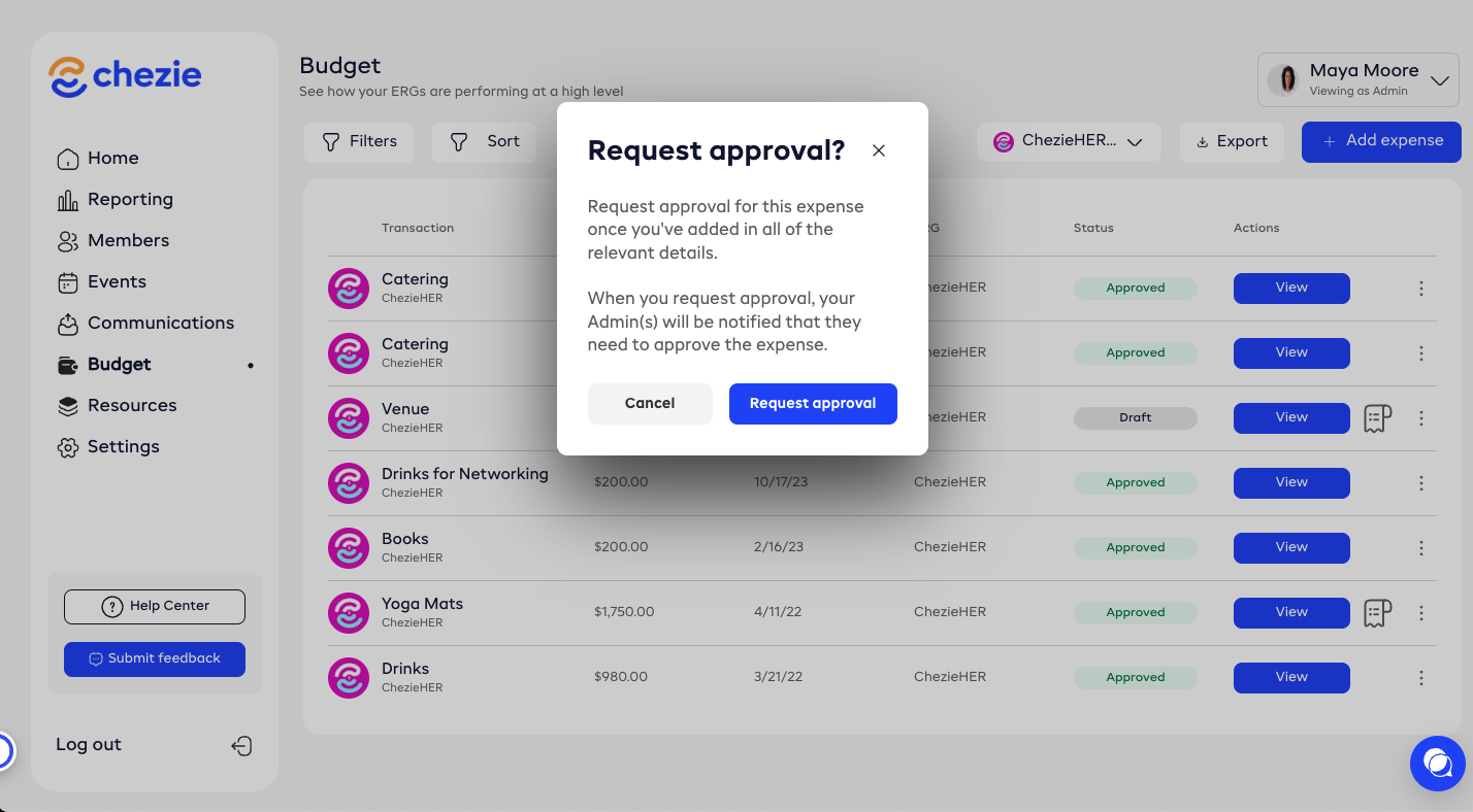 How to request approval for an expense in Chezie.