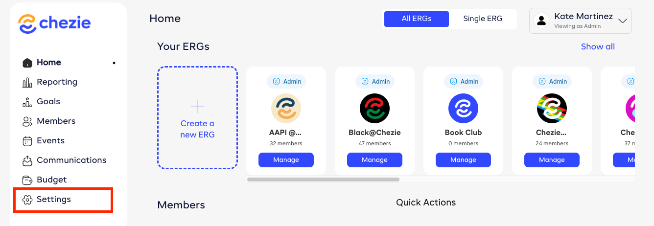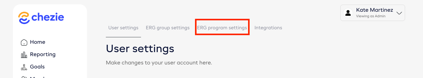 1. From the Admin view, select the Settings tab.